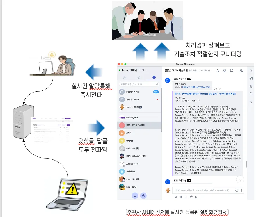 처리결과도 메신저로 공유되어 원활하게 처리되었는지 내부적으로 관리하고 있습니다.