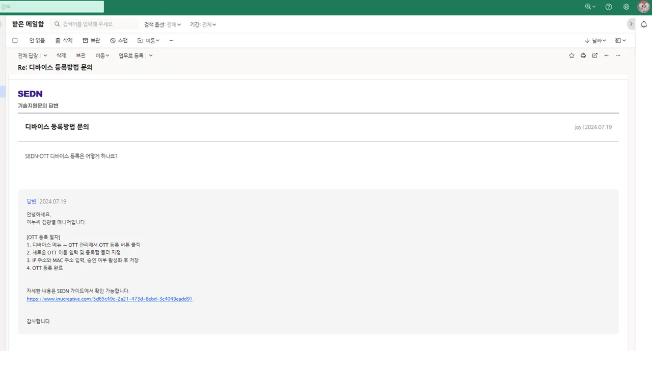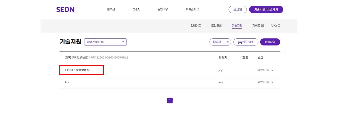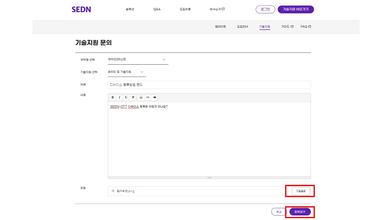 SEDN 도입후 기술지원을 받아야하는 경우 종종 발생합니다