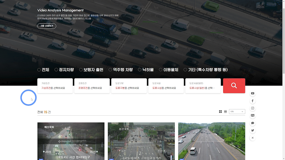 HLS & RTSP 듀얼스트림 아키텍처로 개발된 국토부 ITS korea 영상분석 시스템 인터페이스 화면 예시