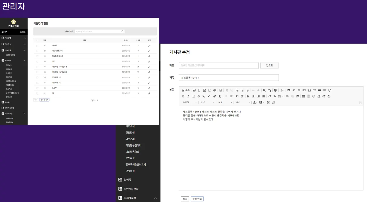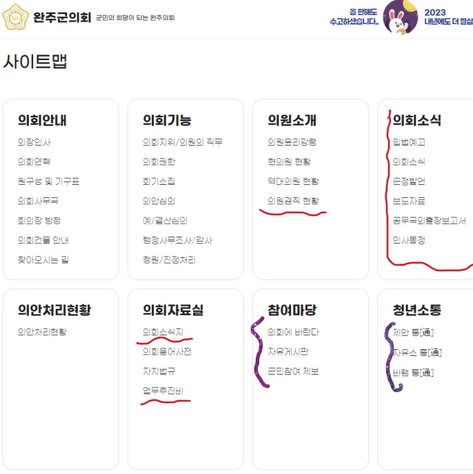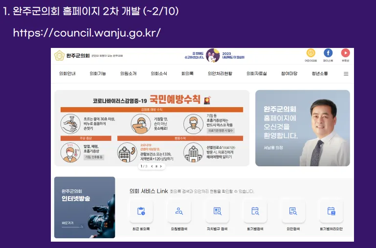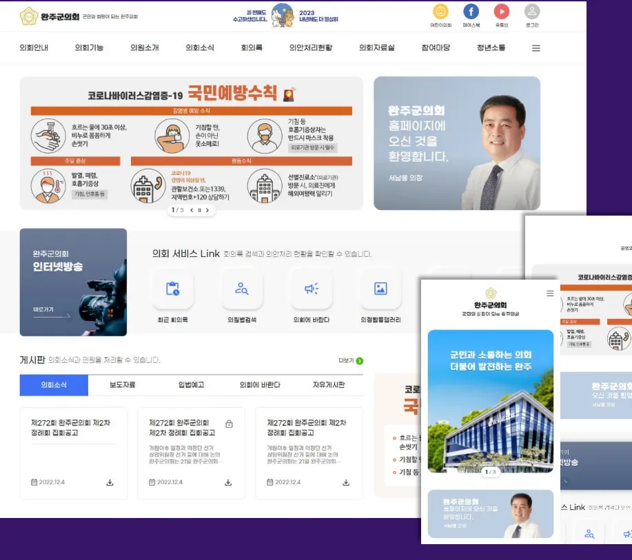 완주군의회 홈페이지 반응형, 웹표준 및 웹접근성 작업을 끝마쳤다고 이야기 주셨습니다.