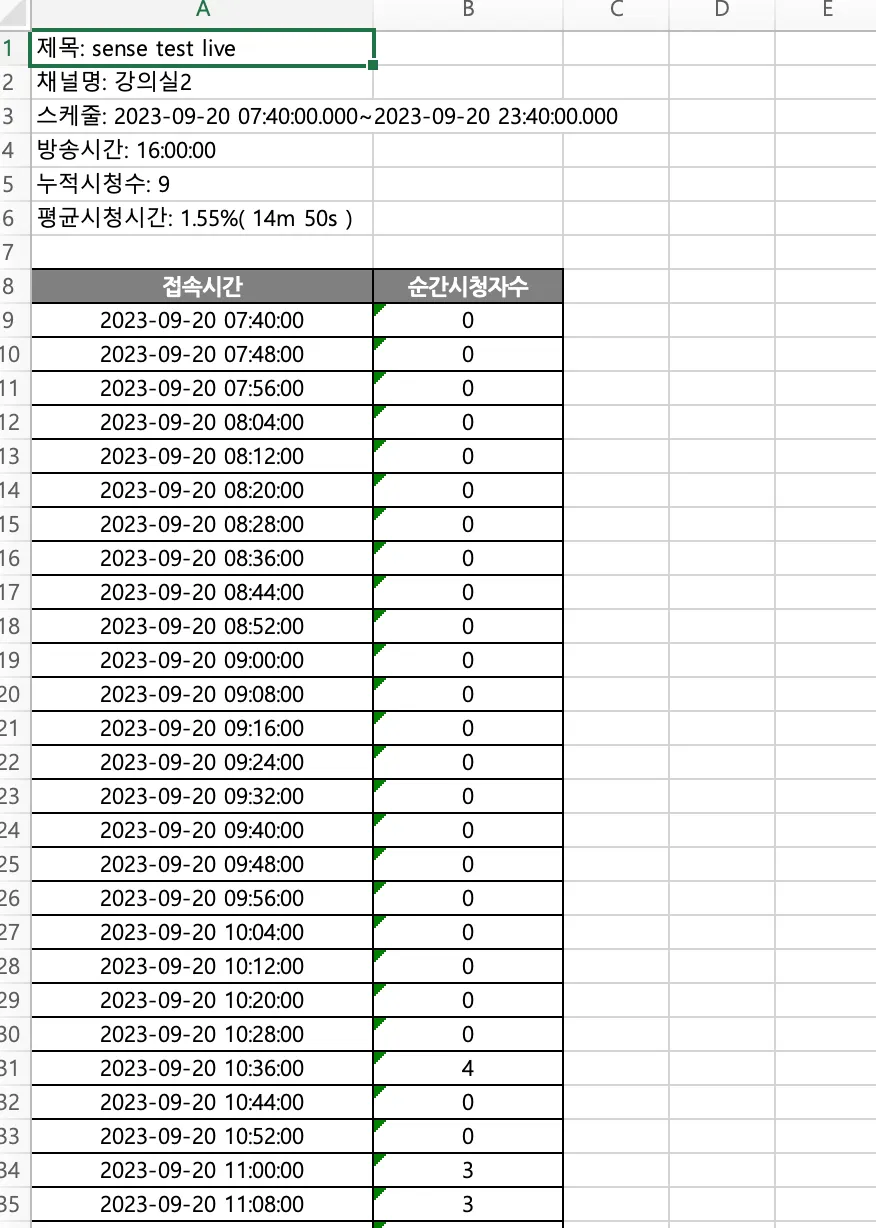 시간대별 동시접속 시청수 표시 : 등록된 시작-종료시간기준으로 시청추이를 확인할수 있음