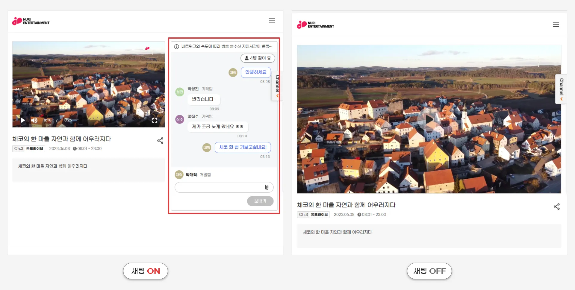 채팅 ON - 해당스케줄 재생창 우측에 채팅창이 활성화됨