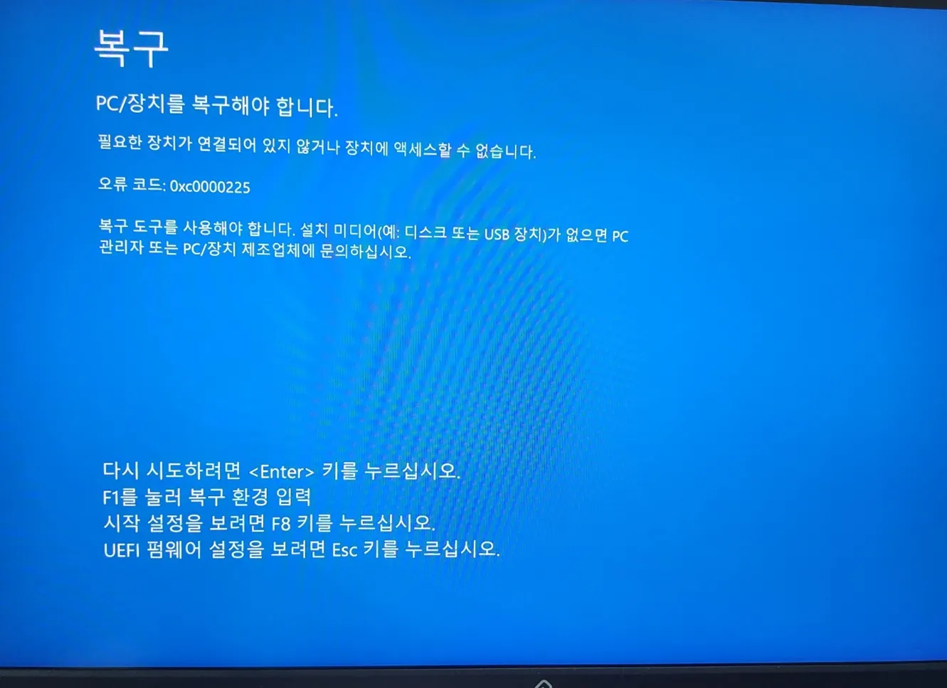 전원 강제 차단시 아래와 같은 화면이 확인되는지 체크