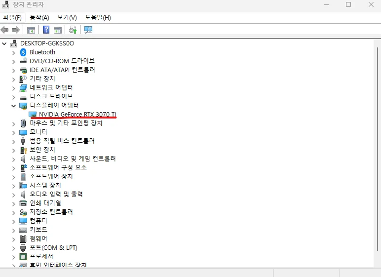 시작 검색창 > ‘장치 관리자’ 검색 > 디스플레이 어댑터 확장