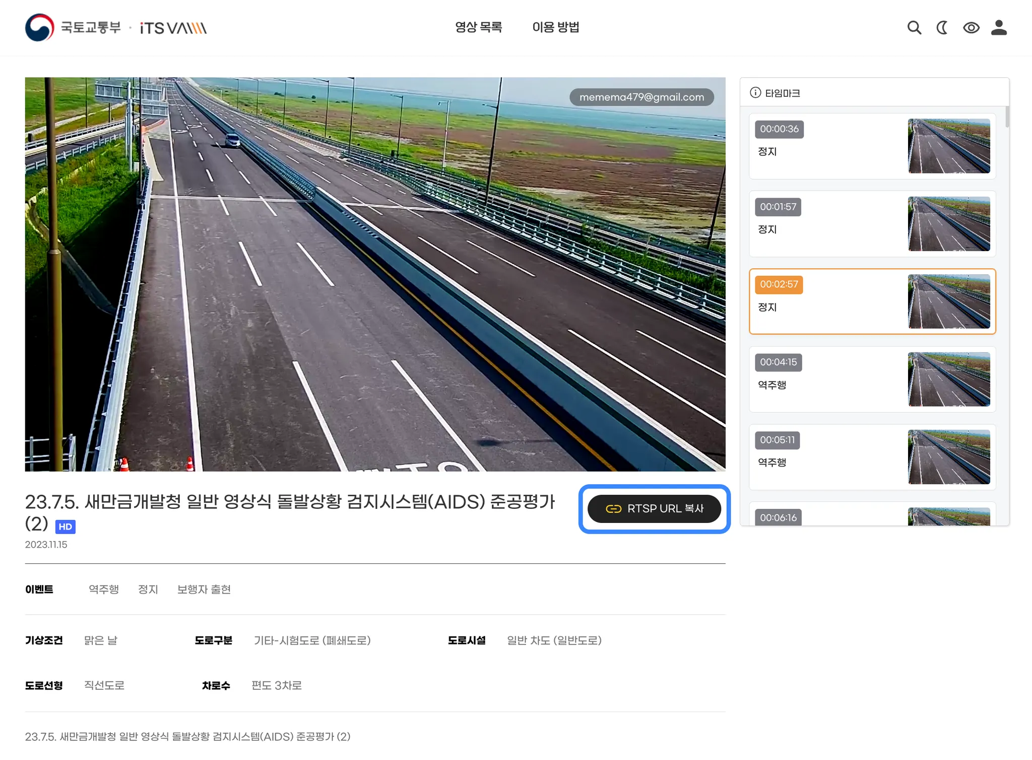 상세페이지에서 [RTSP URL] 버튼을 클릭해주세요.