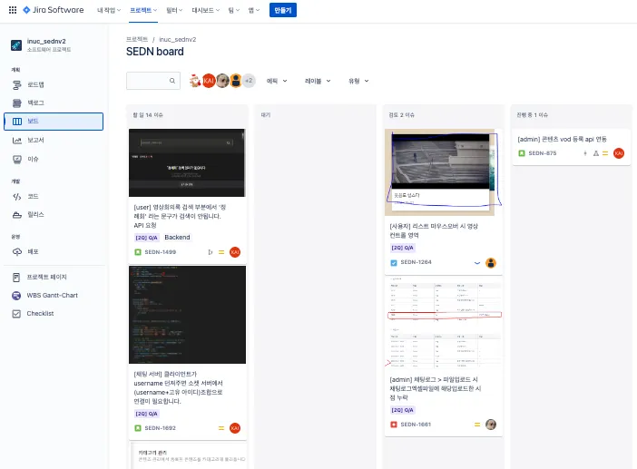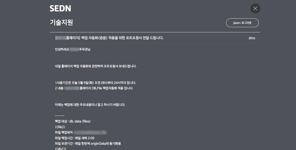 기술지원요청이 접수되면 (board 통해 고객사가 지원요청사항 등록) 본사 매니저, 전담인력 메신저로 실시간 전달되며 조치경과를 해당 매니저가 관리함. 이슈트래킹은 Jira, 산출물관리는 Confluence, 배포관리는 Jenkins 통해 체계적으로 내부 관리되고 있습니다.
