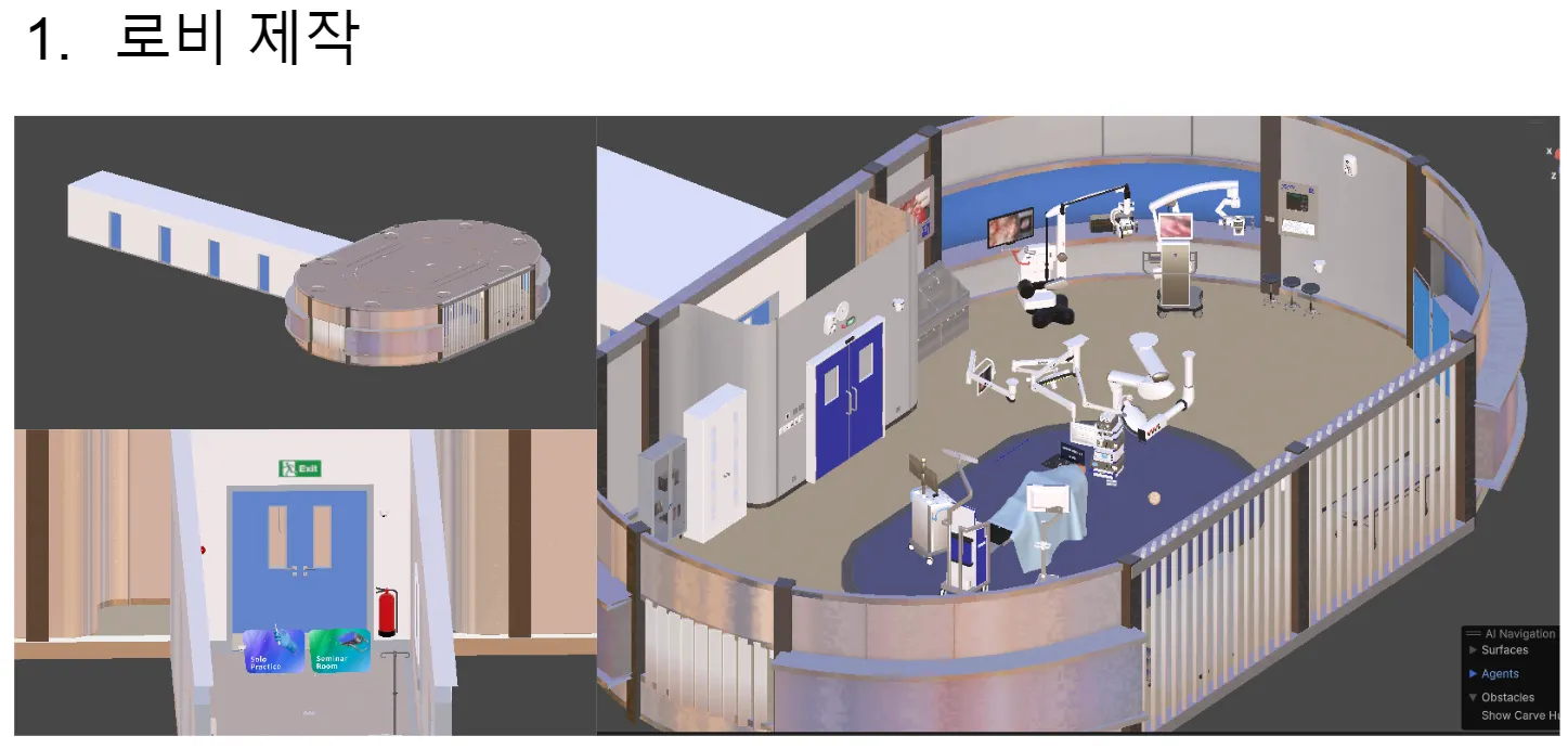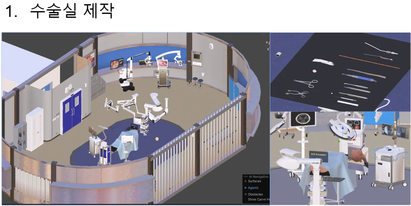 오브젝트(수술도구)에 효과를 주고, 수술환자에 애니메이션 작업까지 구현했다고 합니다.