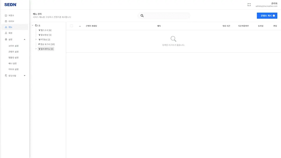 업로드한 콘텐츠를 사용자 페이지에 게시하기 위해 메뉴를 제공합니다. 원하는 구성대로 메뉴를 변경할 수 있고 콘텐츠를 게시해 사용자가 시청할 수 있도록 합니다.