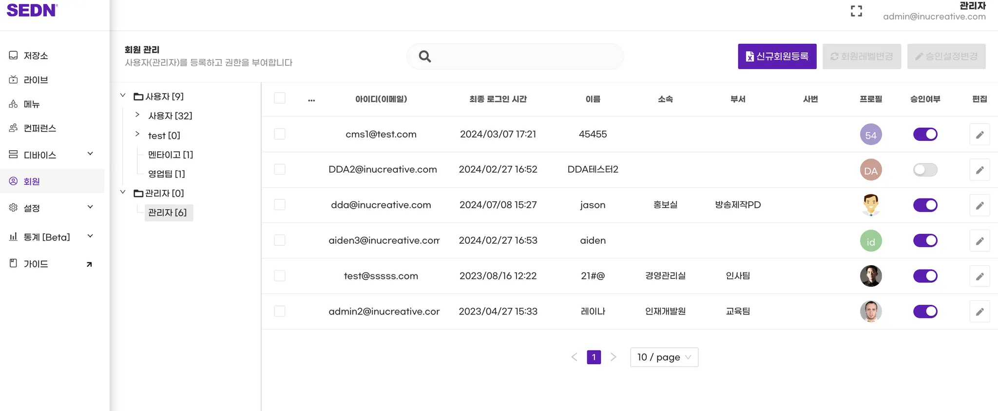 예를들면 임원동정, 온라인행사 메뉴에 올리는 콘텐츠는 인사팀관리자가, 제품교육이나 법정교육 메뉴에 올리는 콘텐츠는 교육팀에서 관리하는 방식이며 서로 상대방 콘텐츠를 들여다 볼수는 없습니다. 최종관리자만 전체를 확인하고 통합관리할수 있습니다.
