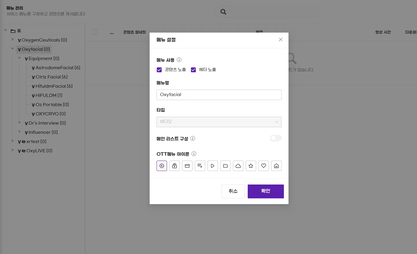 OTT메뉴에 사용할 고유의 아이콘을 부여할수도 있음