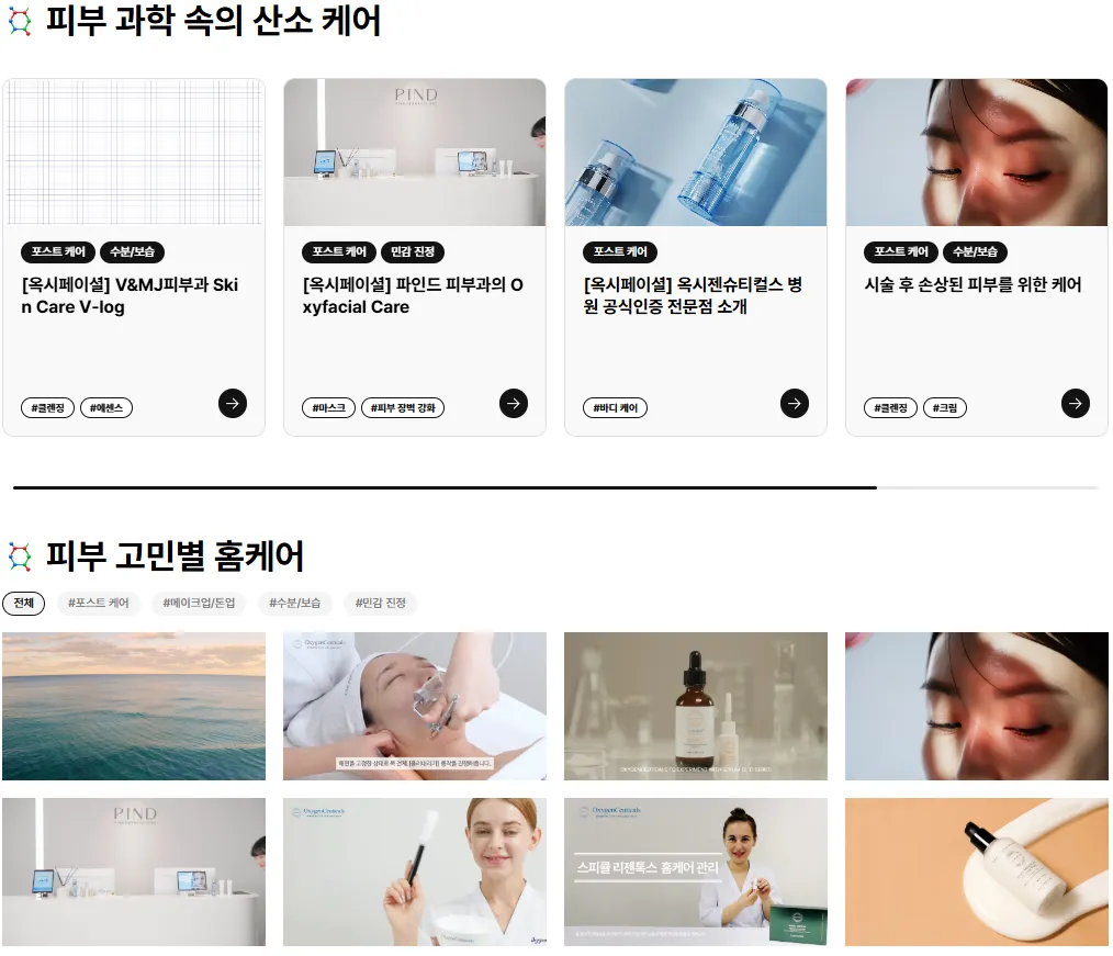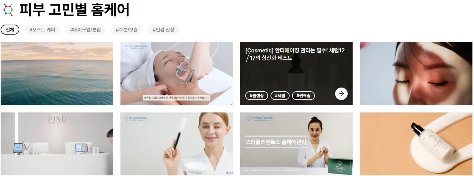 상단 : 카드(Card)스타일의 콘텐츠 노출 / 하단 : 그리드(Grid)스타일의 콘텐츠 노출