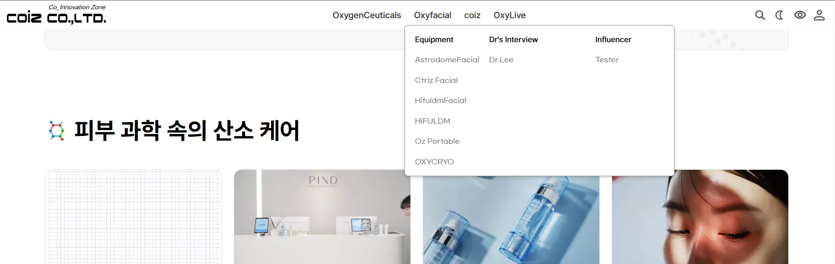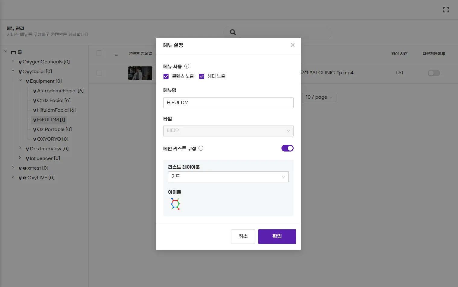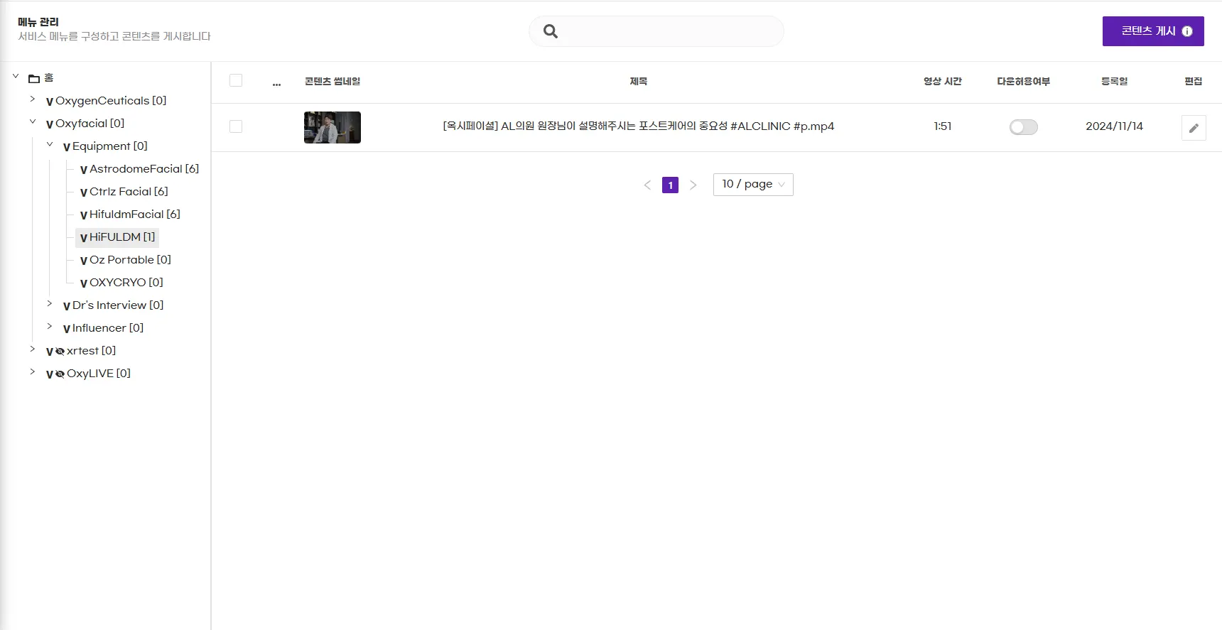 위 화면의 커서 위치를 메뉴구조로 풀어보면 1depth : Oxyfacial - 2depth : Equipment - 3depth : HiFULDM
