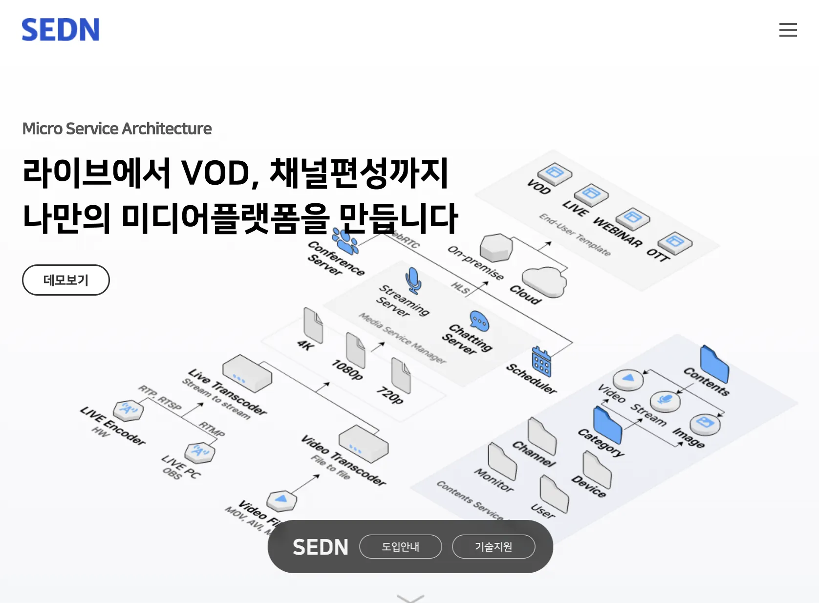 기업이나 공공고객사의 VOD, LIVE, OTT 서비스를 위한 올인원 형태의 미디어패키지솔루션 SEDN v1을 리팩토링하여 SEDN v2를 2022.12 론칭과 함께 혁신제품 선정소식을 전합니다.