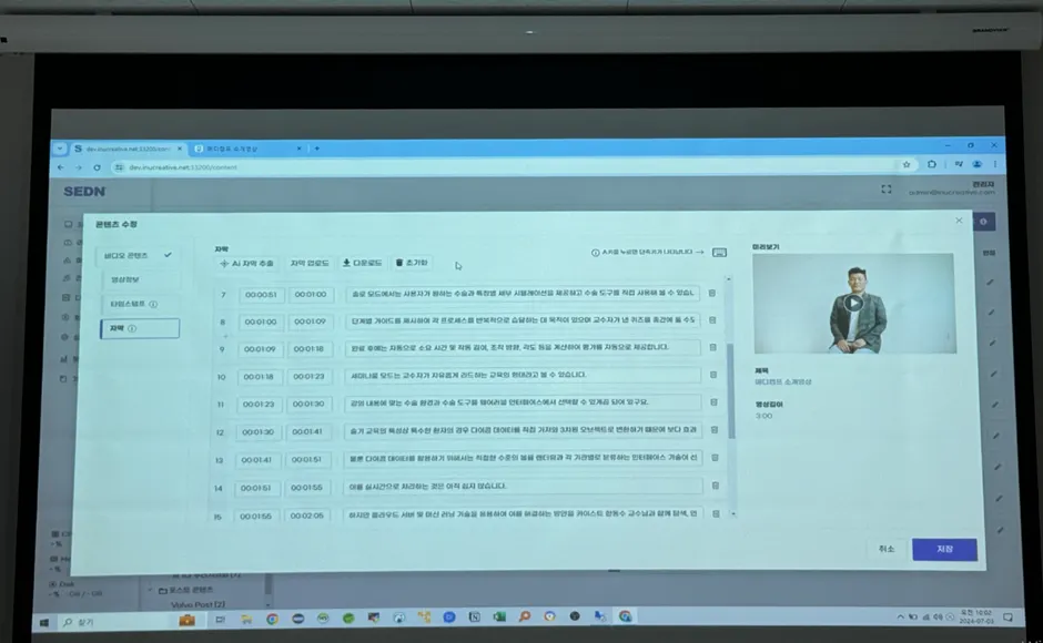 변환된 자막 파일을 VideoJS 웹 플레이어에서 사용, 관리자페이지에서 편집가능