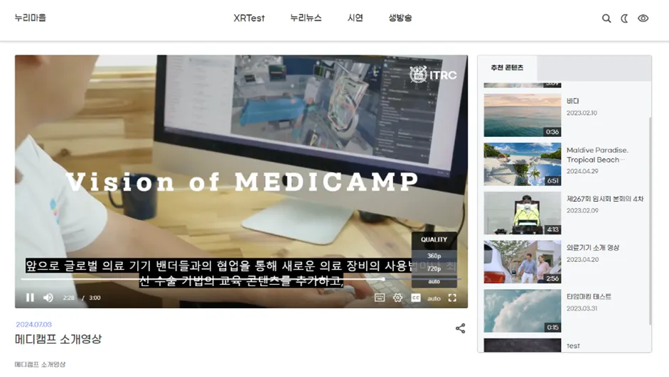 생성된 HLS 파일을 VideoJS와 같은 웹 플레이어에 통합하여 사용자가 다양한 해상도로 비디오를 시청할 수 있도록 해요 (1080p, 720p, 360p 인코딩하여 다중 해상도 스트리밍을 제공)