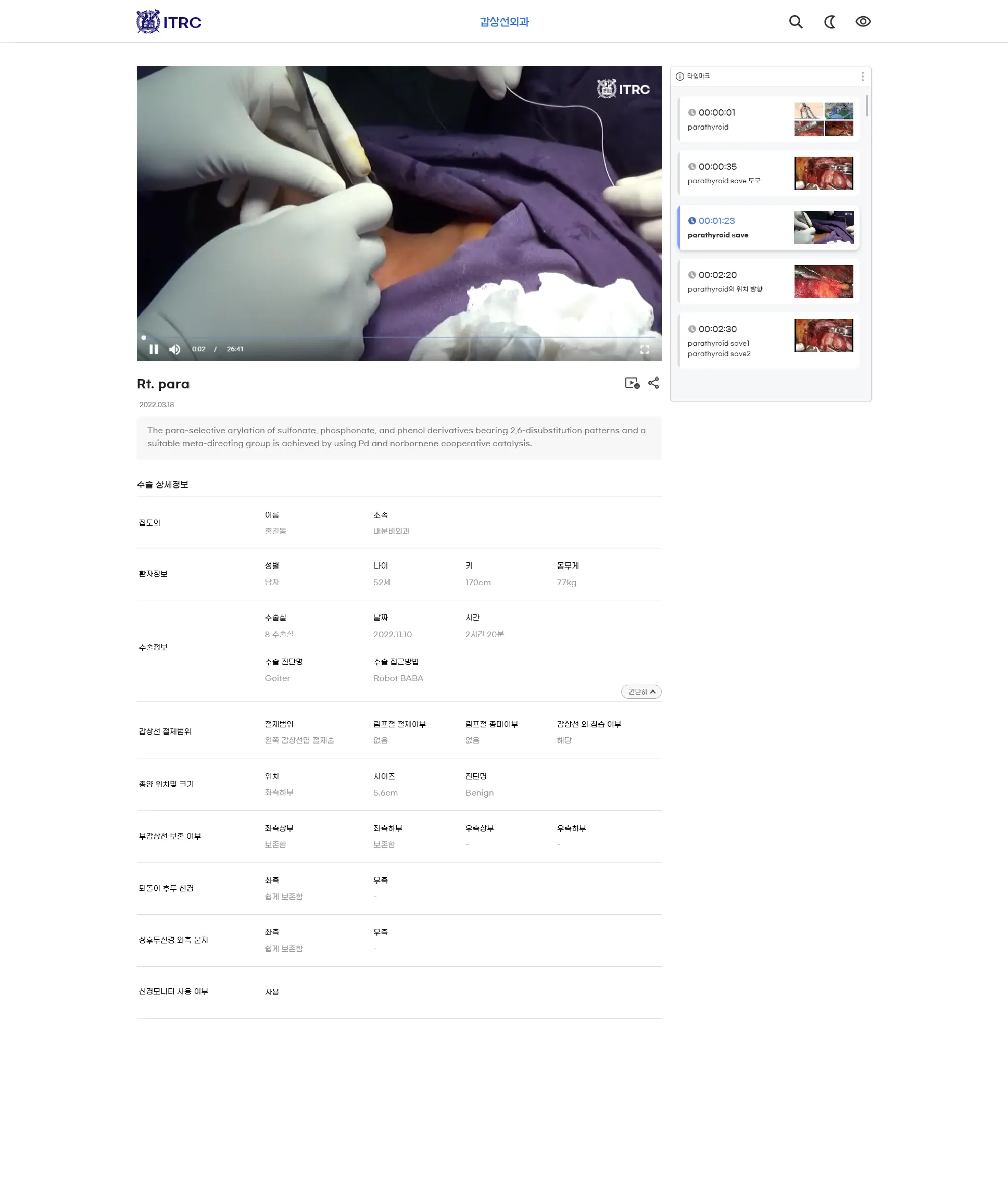 수술 상세 정보를 제공해 메디컬 교육 컨텐츠로 사용 가능합니다.
