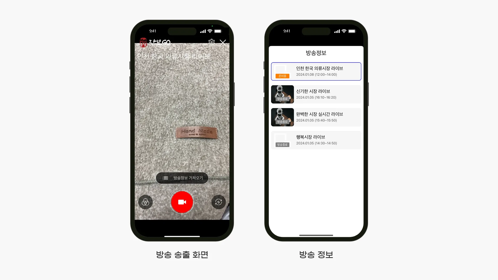 모바일 카메라를 이용하여 직접 라이브 송출이 가능한 전용어플을 제공합니다.