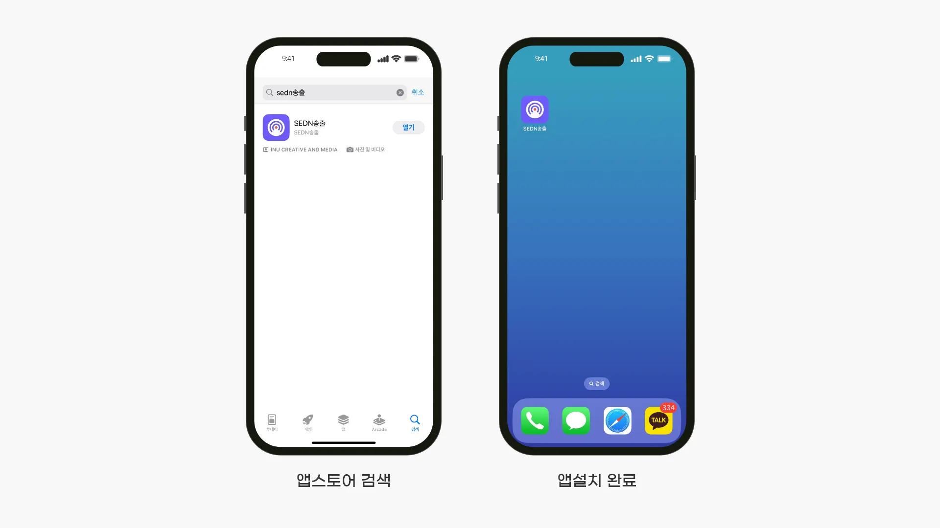 AOS는 구글스토어, iOS는 앱스토어에 접속해 SEDN 송출검색하고 해당APP을 설치합니다.