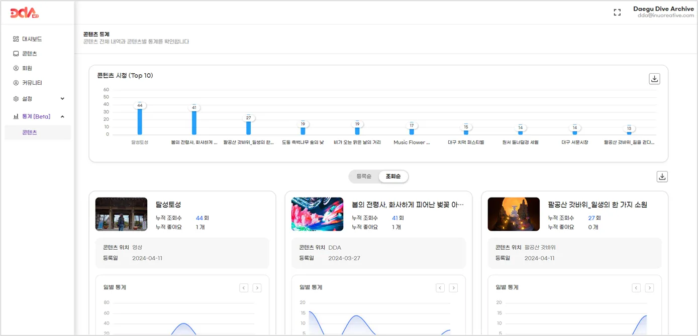 콘텐츠별 재생 통계를 실시간으로 분석할 수 있고 직관적인 그래픽 인터페이스 제공