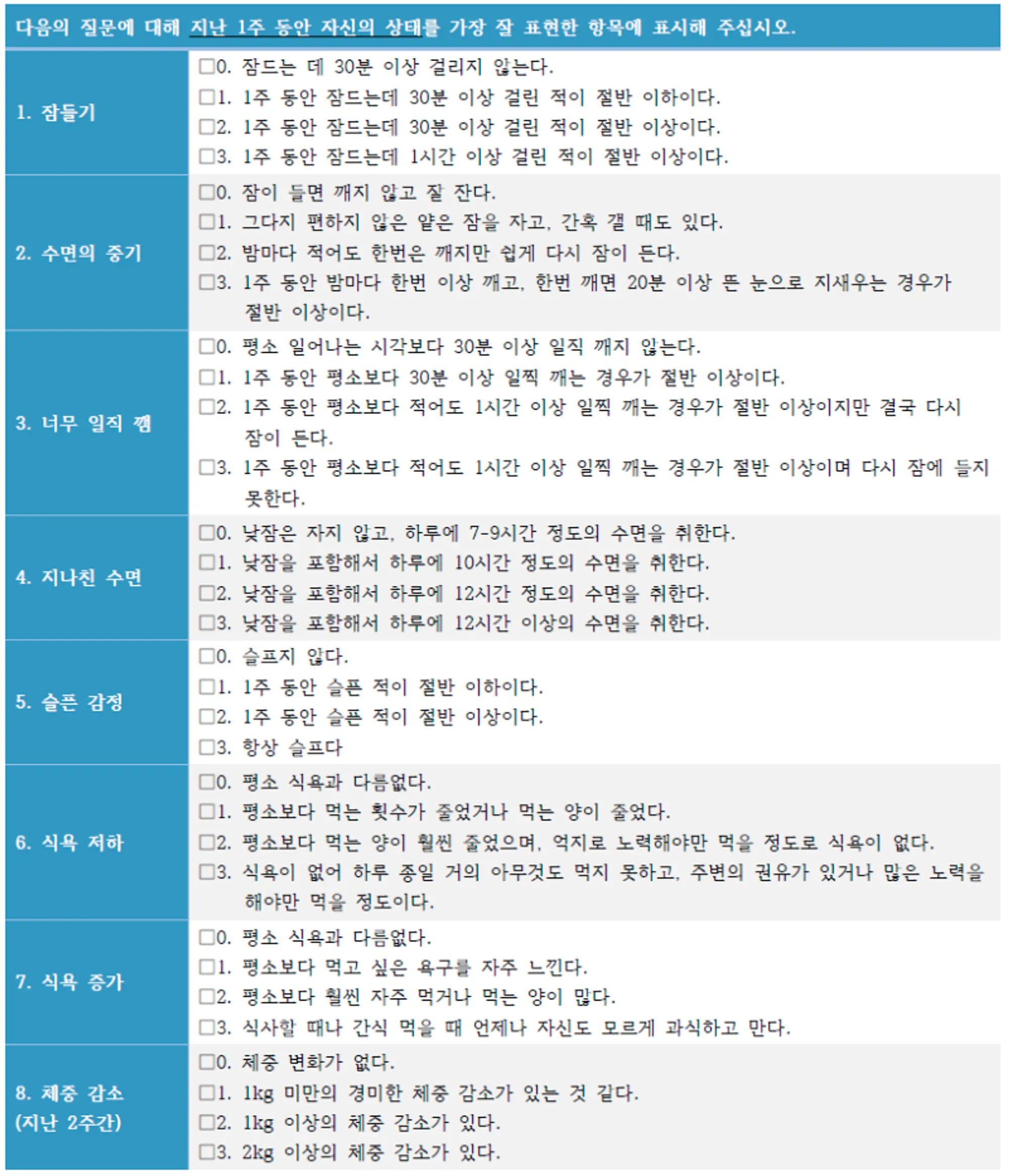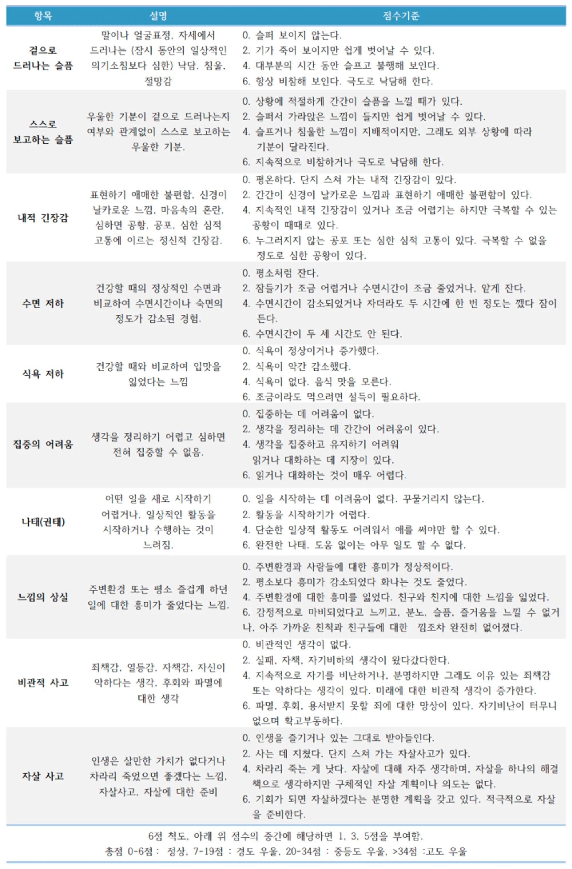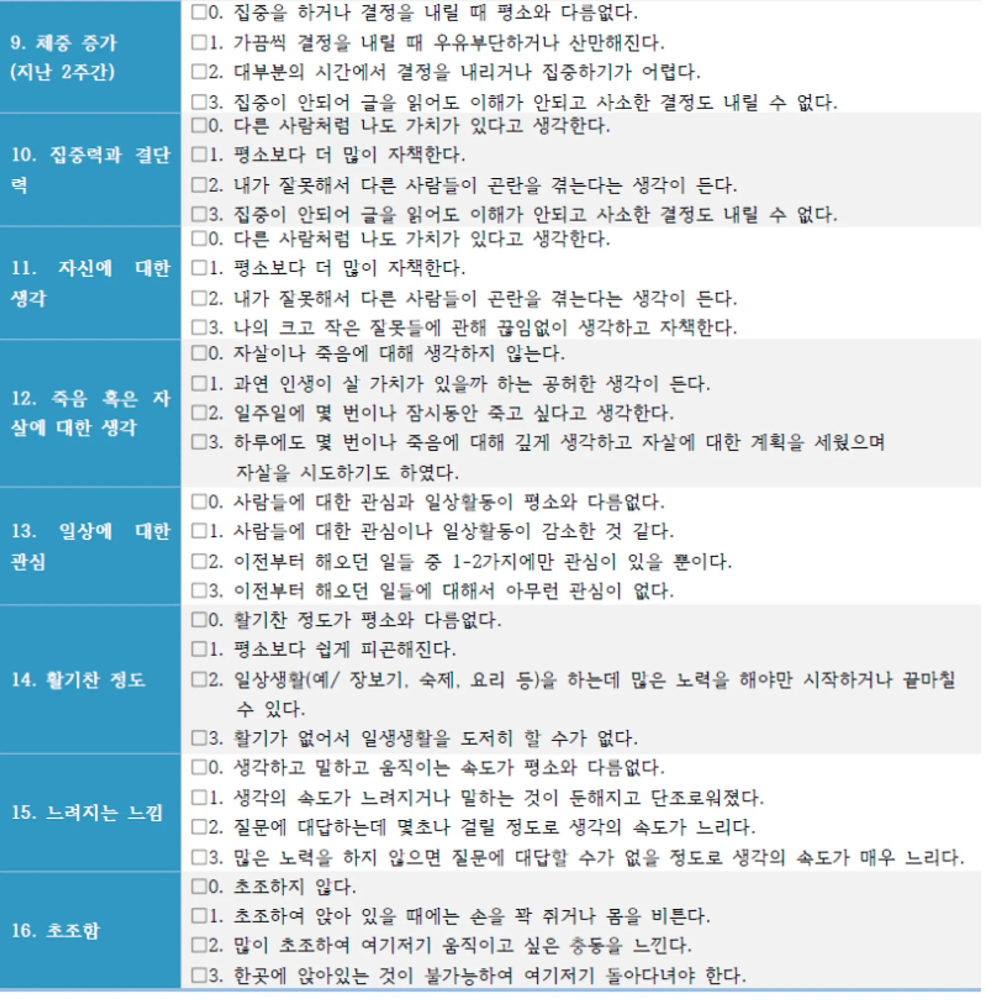 한글판 Montgomery-Åsberg(몽고메리-아스버그) 우울증 평가 척도