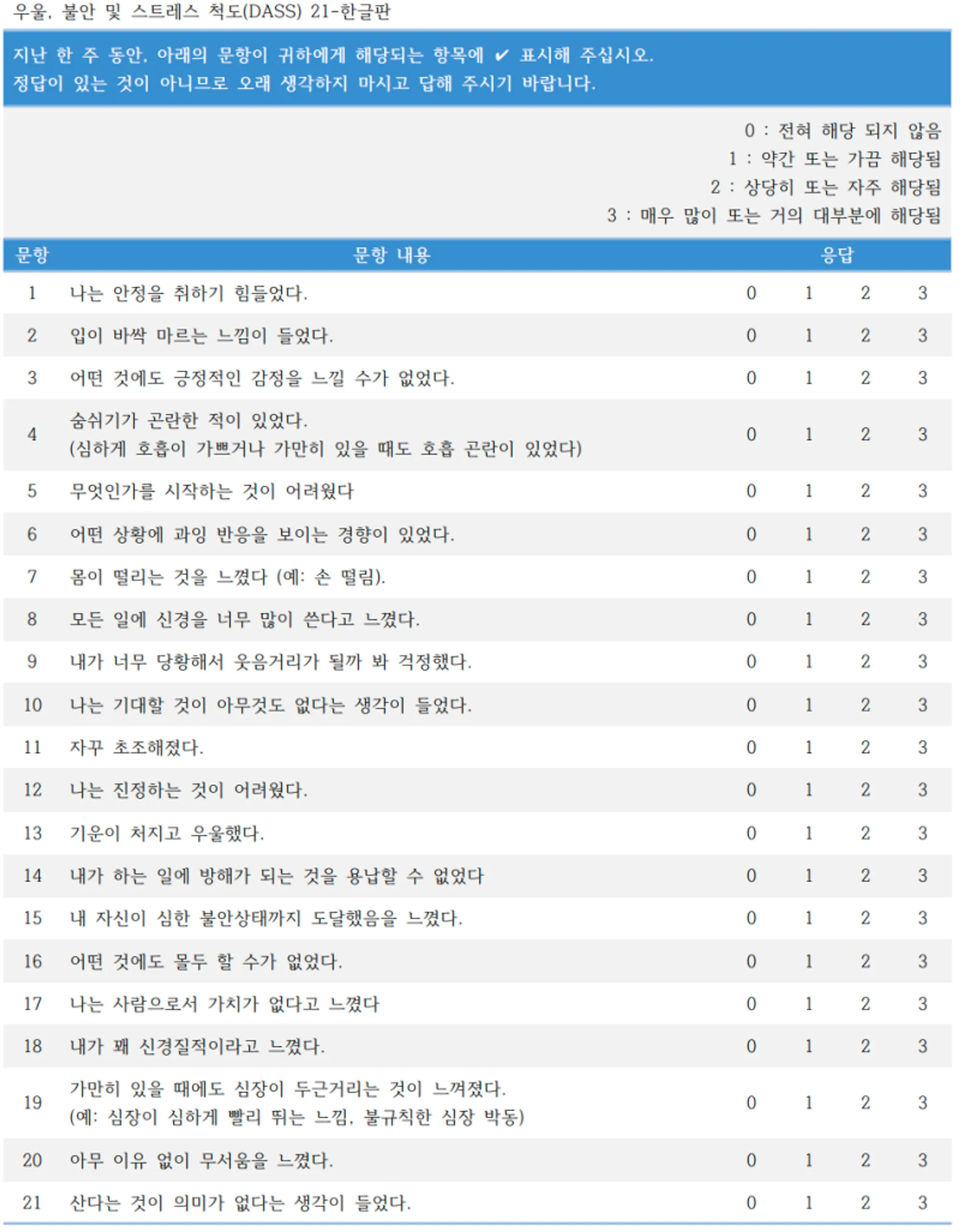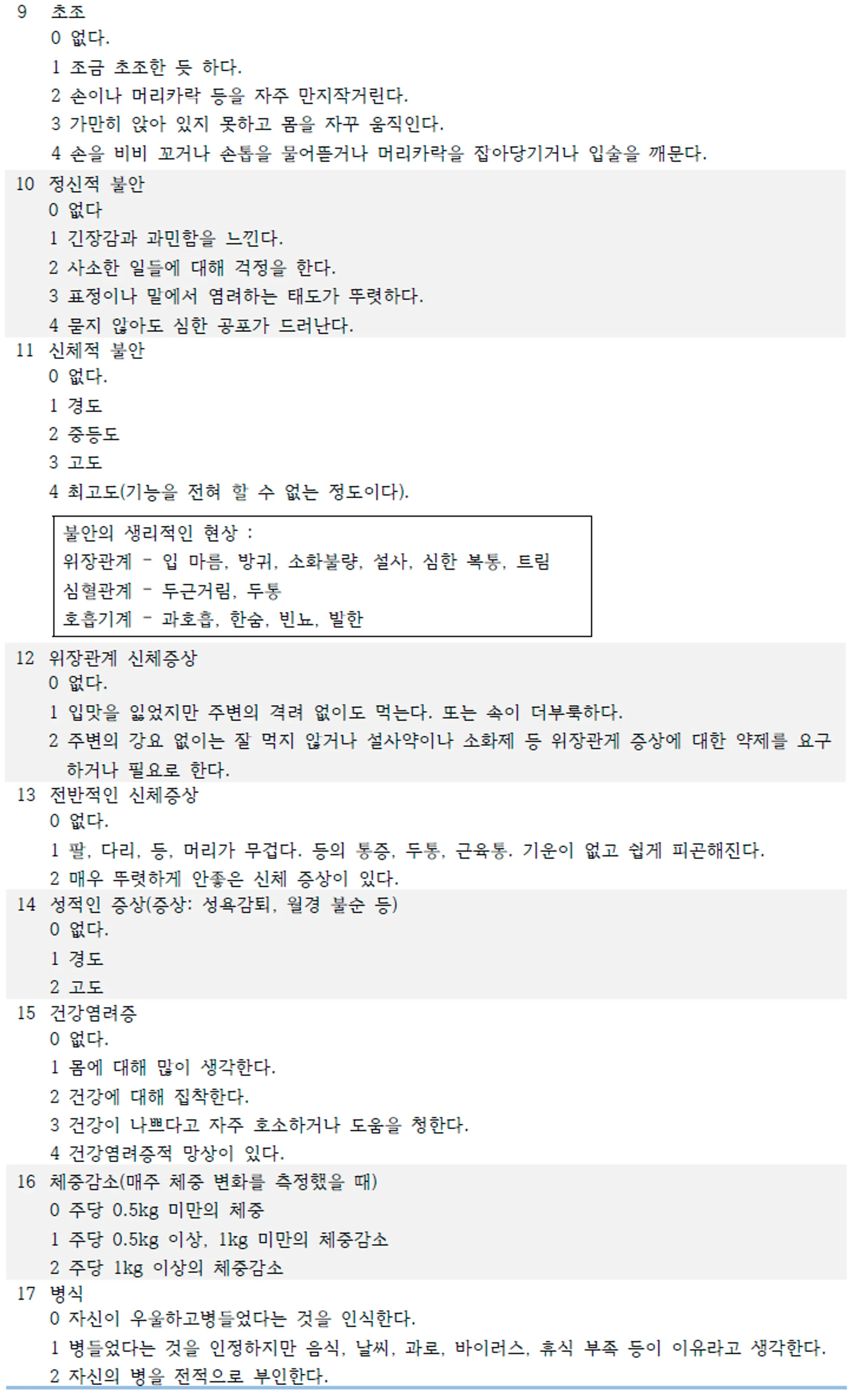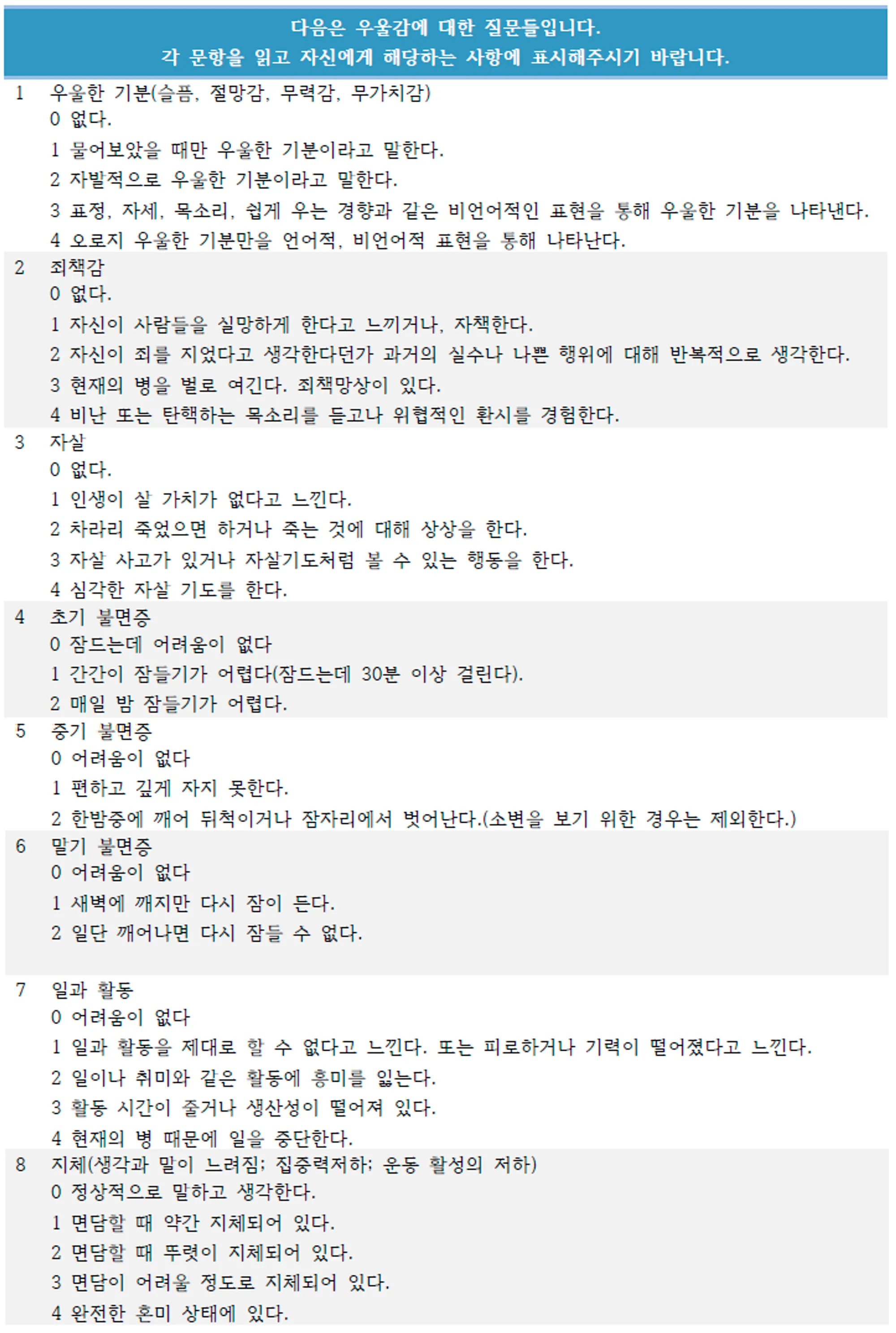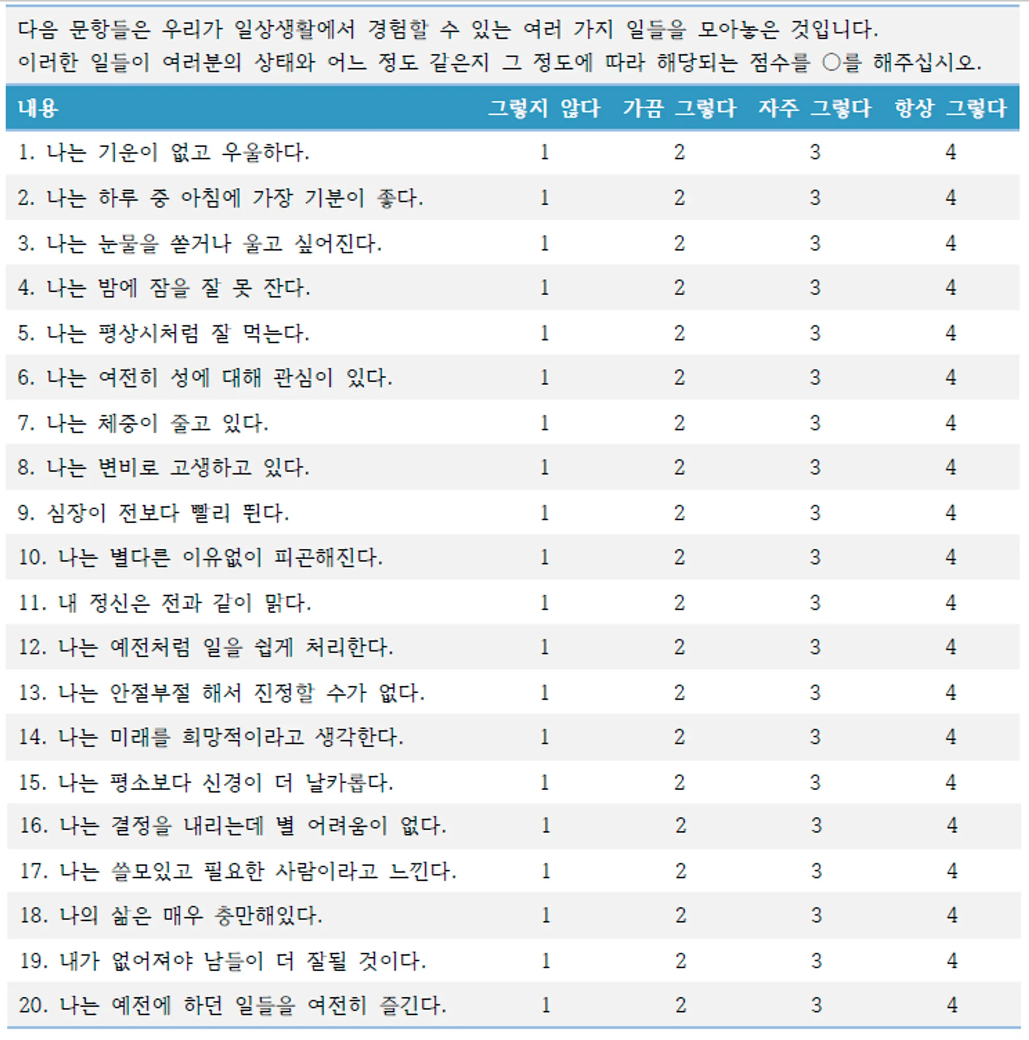 한글판 Montgomery-Åsberg(몽고메리-아스버그) 우울증 평가 척도