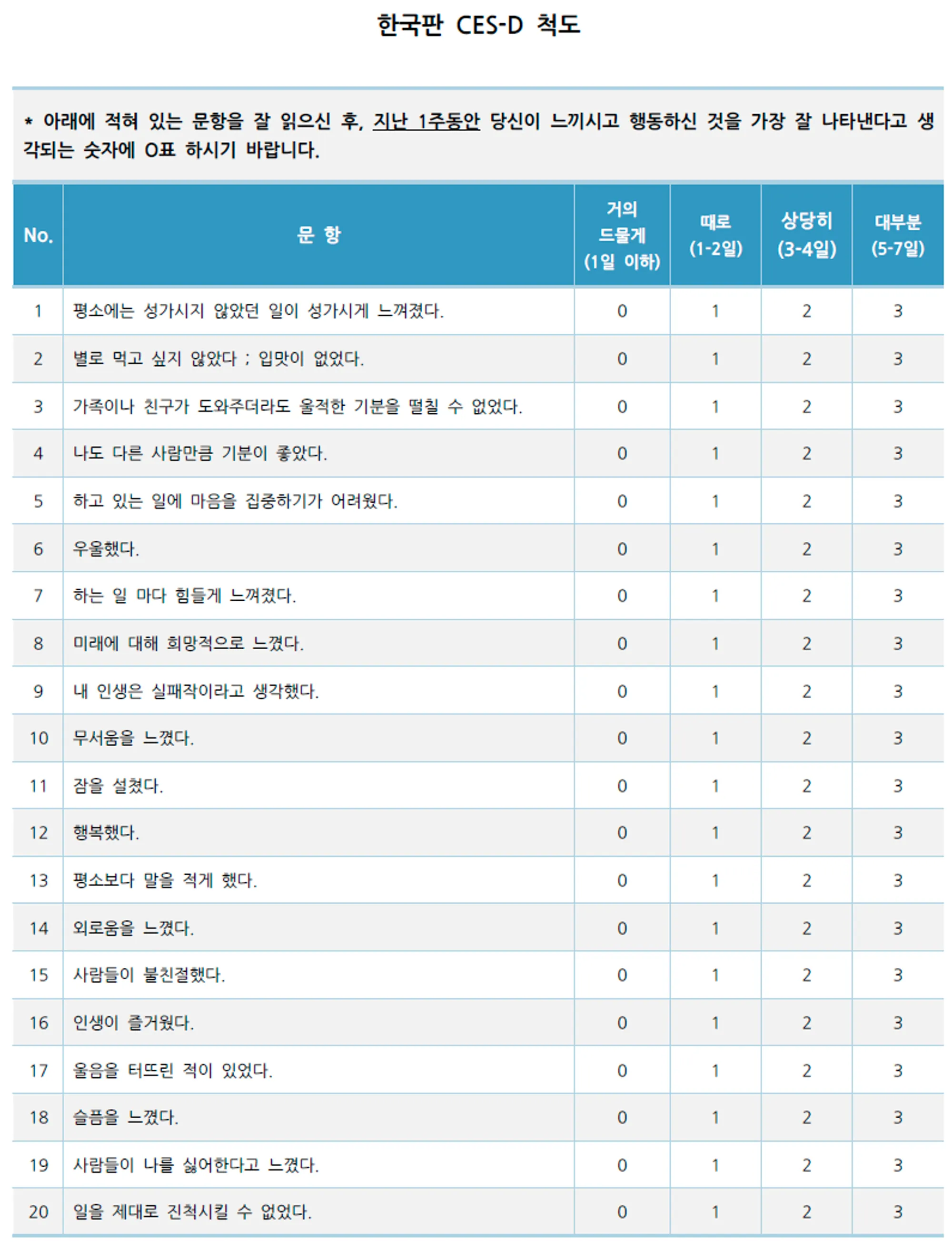 K-DEP(Korean Screening Tool for Depressive Disorders)