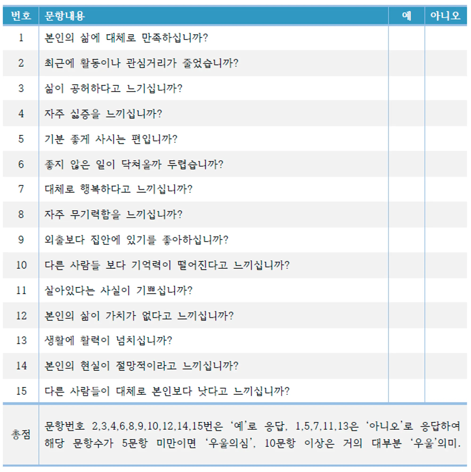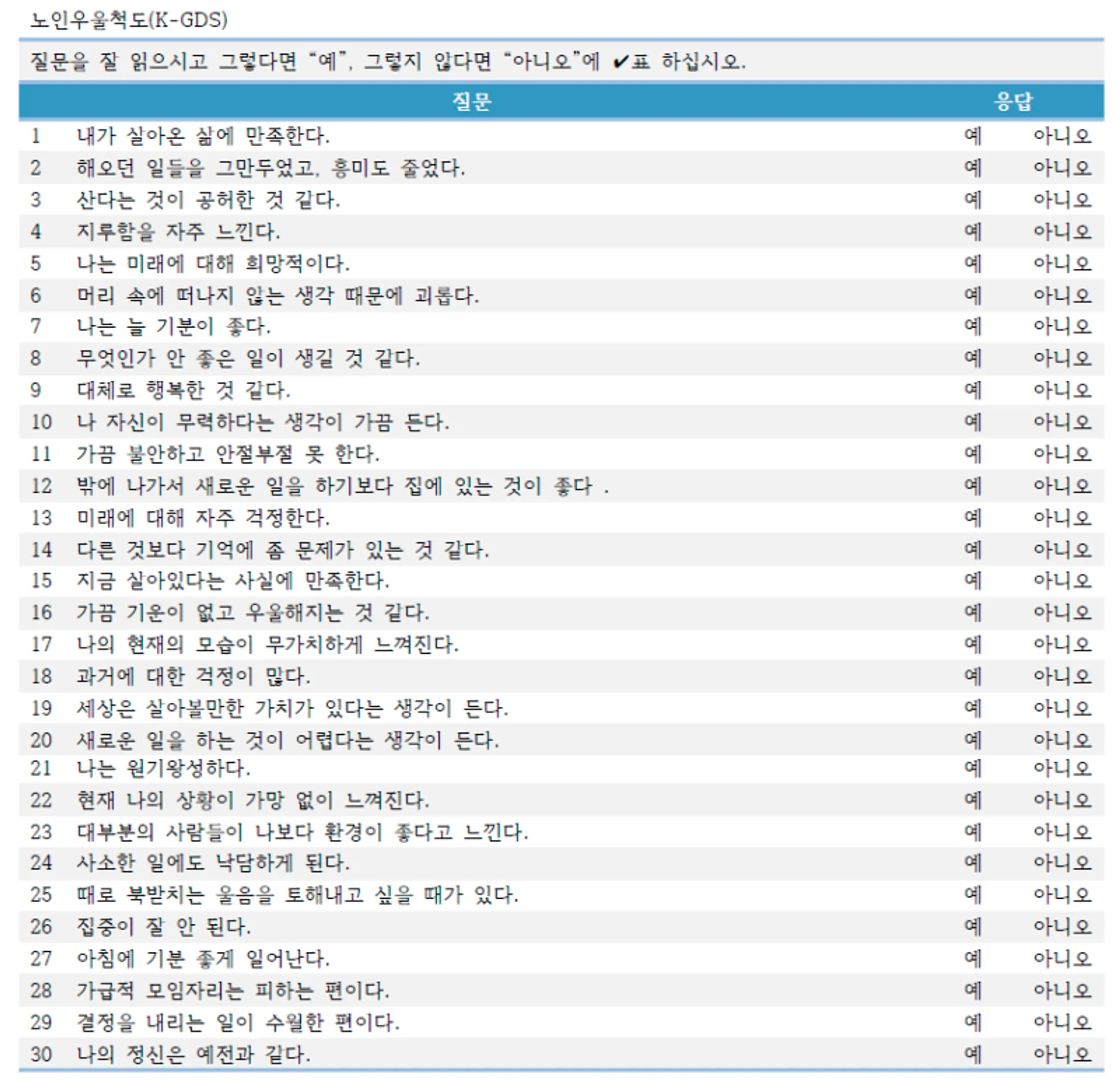 GDS-SF(Geriatric Depression Scale short form)(GDSSF-K)