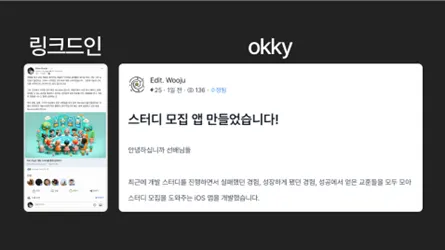 앱스토어 링크 첨부해 뒀고 링크드인 , okky 개발자 커뮤니티를 돌아다니면서 미디엄 글을 퍼날랐어요.